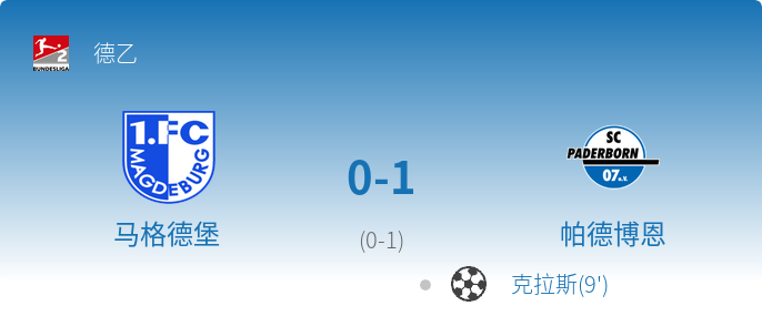 德乙第12轮战报:马格德堡主场0-1不敌帕德博恩,遭遇主场失利
